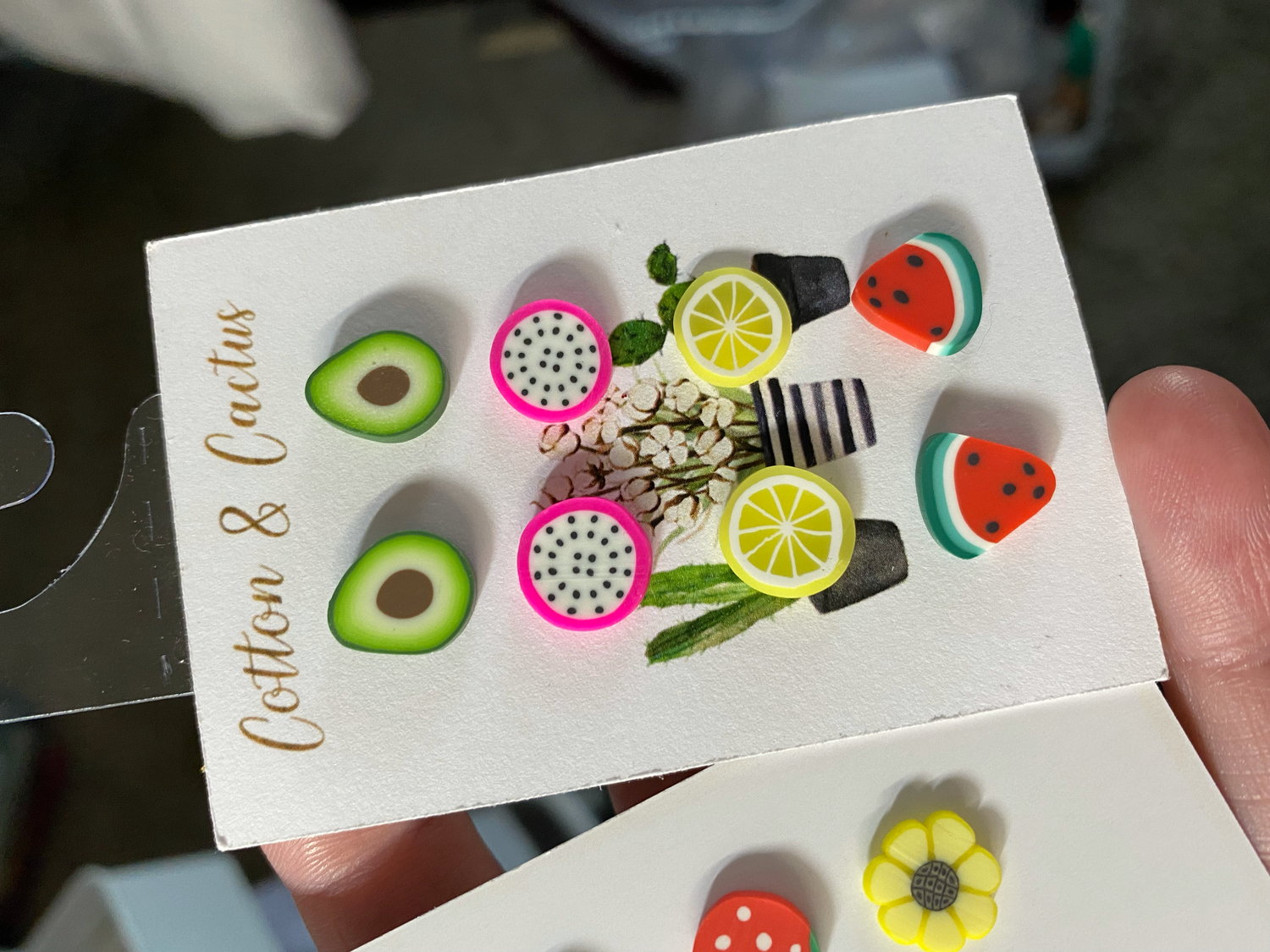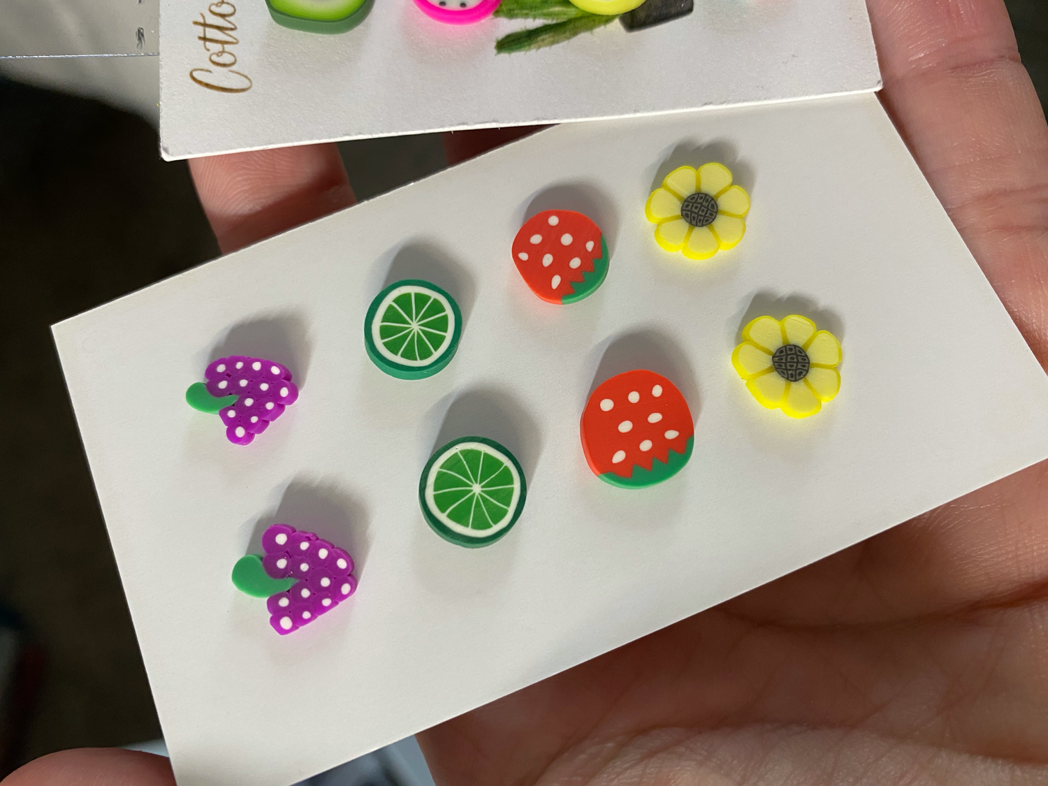 Super lightweight clay studs. Hypoallergenic ear wires. Choose from the Grape Card or the Avocado Card.